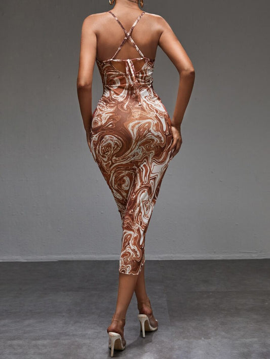 SHEIN SXY Marble Print Criss-cross Tie Back Mesh Bodycon Dress