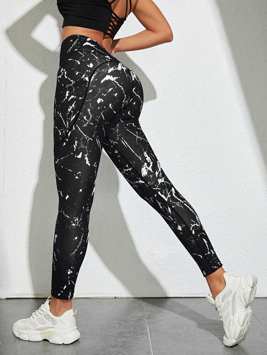 SHEIN Sport Studio Tie Dye Yoga Leggings M-shaped Seam Booty Sculpt Wide Waistband Sports Leggings With Side Pocket