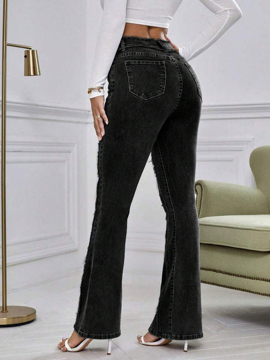 SHEIN Essnce Raw Cut Bootcut Leg Jeans