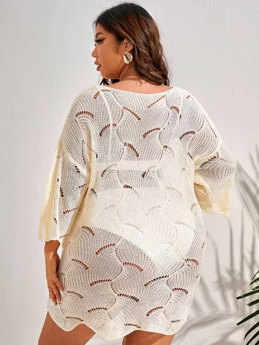 Swim Vcay Plus Size Plain Knitted Cover Up Summer
