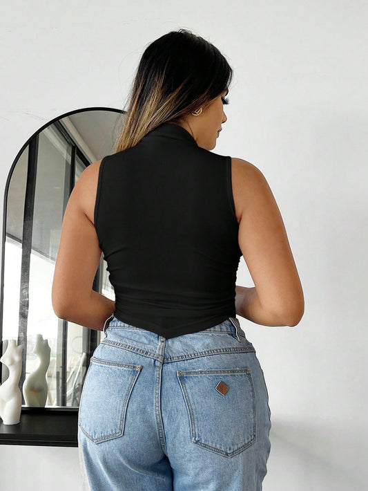 SXY Mock Neck Asymmetrical Hem Tank Top