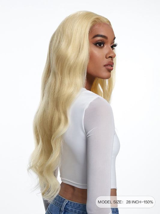 613 Blonde Körperwelle 13 x 4 Spitzenfrontperücke vorgezupft mit Babyhaar Echthaarperücke Haarersatzperücke Täglicher Gebrauch Top-Qualität für Frauen Blonde Farbe