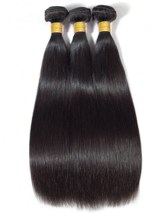 3pcs Straight Human Hair Bundles Virgin Hair Extension 3 Bundles Real Double Weft Hair Weave Cheap Hair Daily Use Natural Black Color