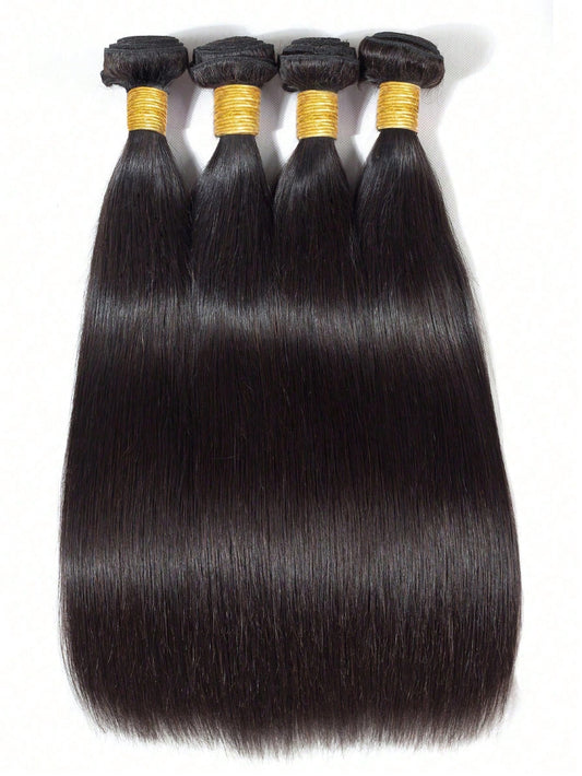 4pcs Straight Human Hair Bundles Virgin Hair Extension 4 Bundles Hair Weave Double Weft Hair Weave Cheap Daily Use Natural Black Color