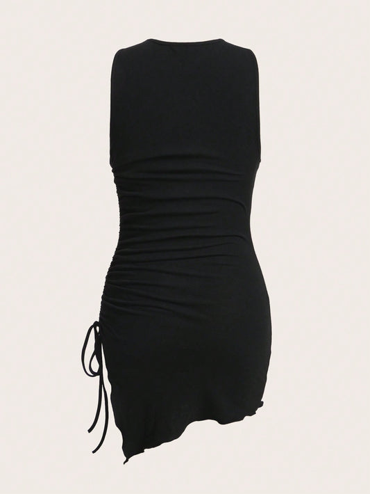 EZwear Drawstring Side Asymmetrical Hem Tank Dress
