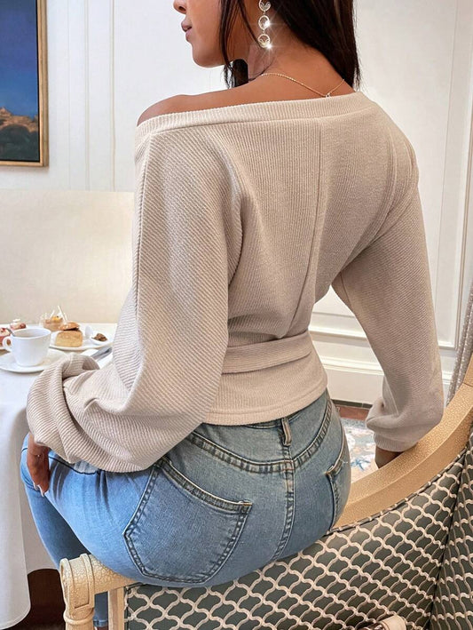 Firerie Surplice Neck Batwing Sleeve Belted Tee