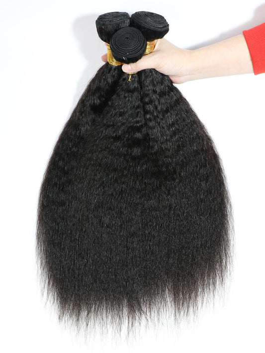 3pcs Yaki Straight Bundles Human Hair 100% Unprocessed Virgin Human Hair Kinky Straight Wave 3 Bundles Hair Extensions for Women Natural Black Color
