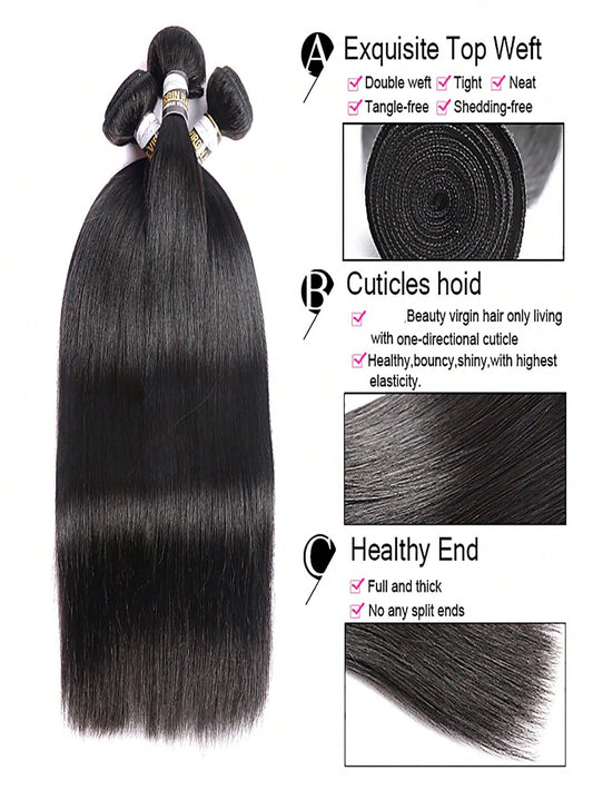 3 PCS Straight Hair Bundles Weave Natural Black Color 100% Unprocessed Virgin Human Hair Cuticle Aligned One Donor Hair 3 Bundles Deals
