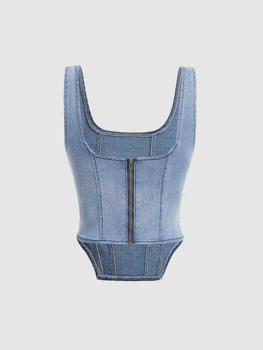 MOD Zip Back Tube Denim Top