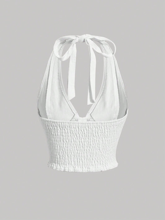 MOD Lace Up Front Halter Neck Denim Top