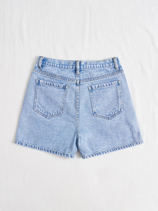 EZwear Solid Stepped Waist Straight Leg Denim Shorts