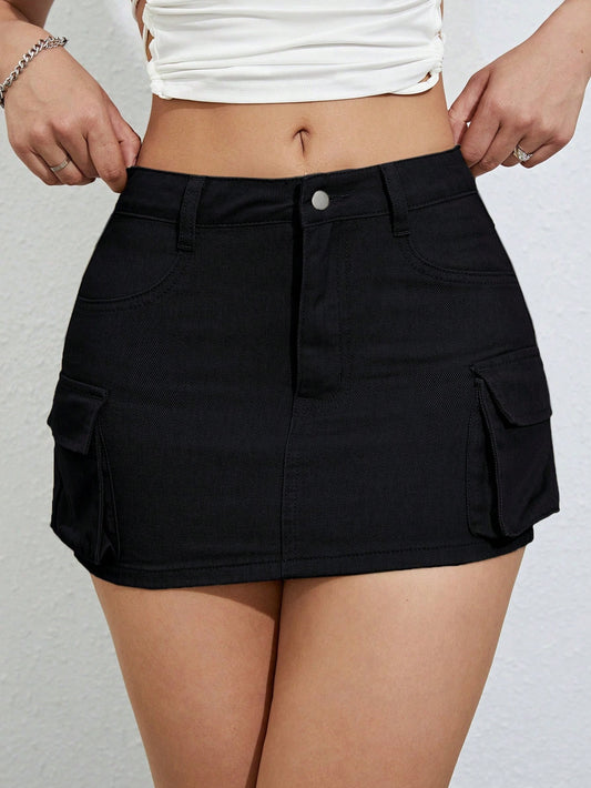 EZwear Flap Pocket Denim Skirt