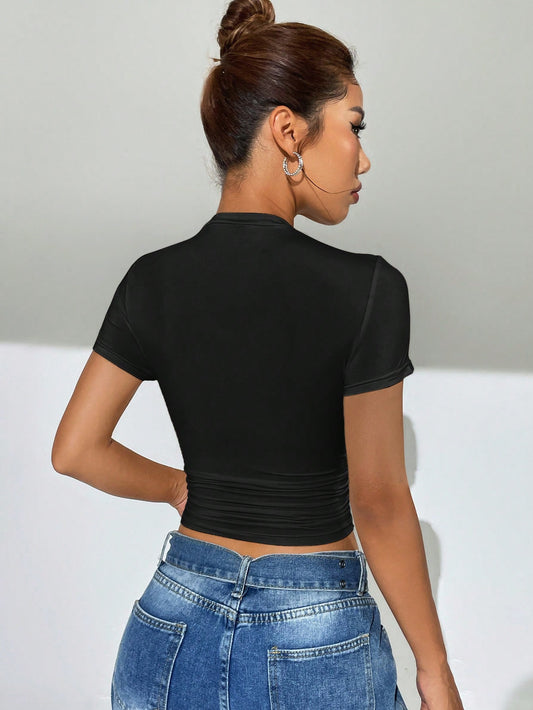 EZwear Solid Ruched Side Crop Tee