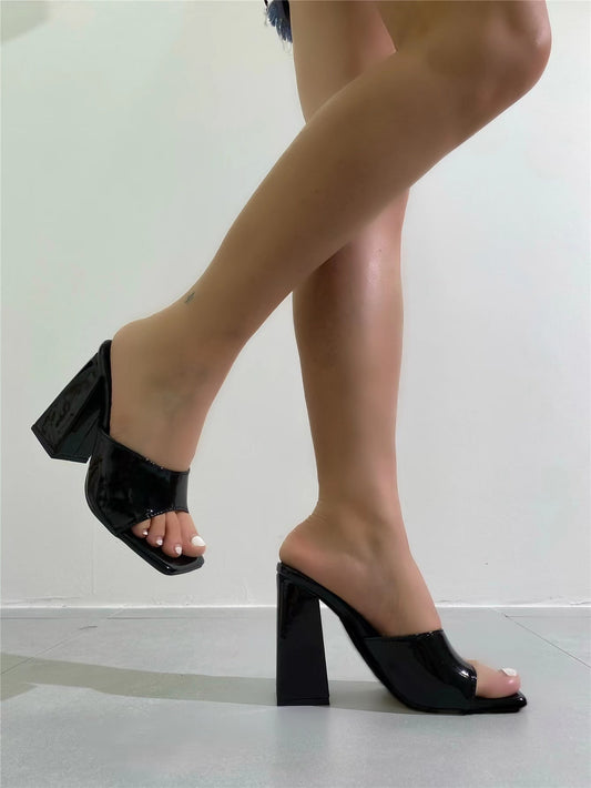 Women Minimalist Chunky Heeled Mule Sandals, Fashion Summer Heeled Sandals