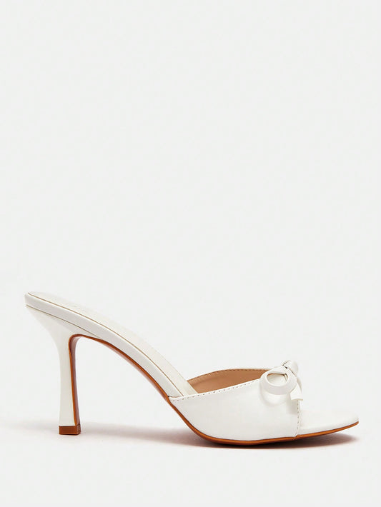 MOD Women Bow Decor Stiletto Heeled Mule Sandals, Fashion Summer Heeled Sandals