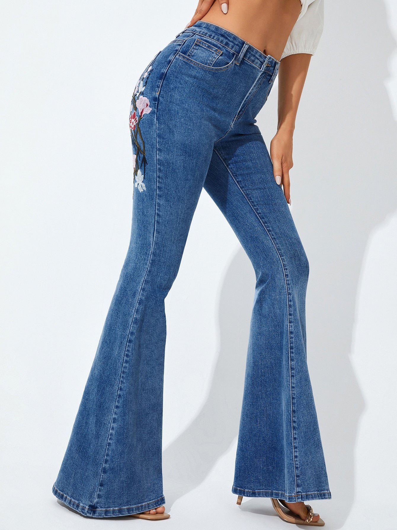 EMERY ROSE Floral Embroidery Flare Leg Jeans