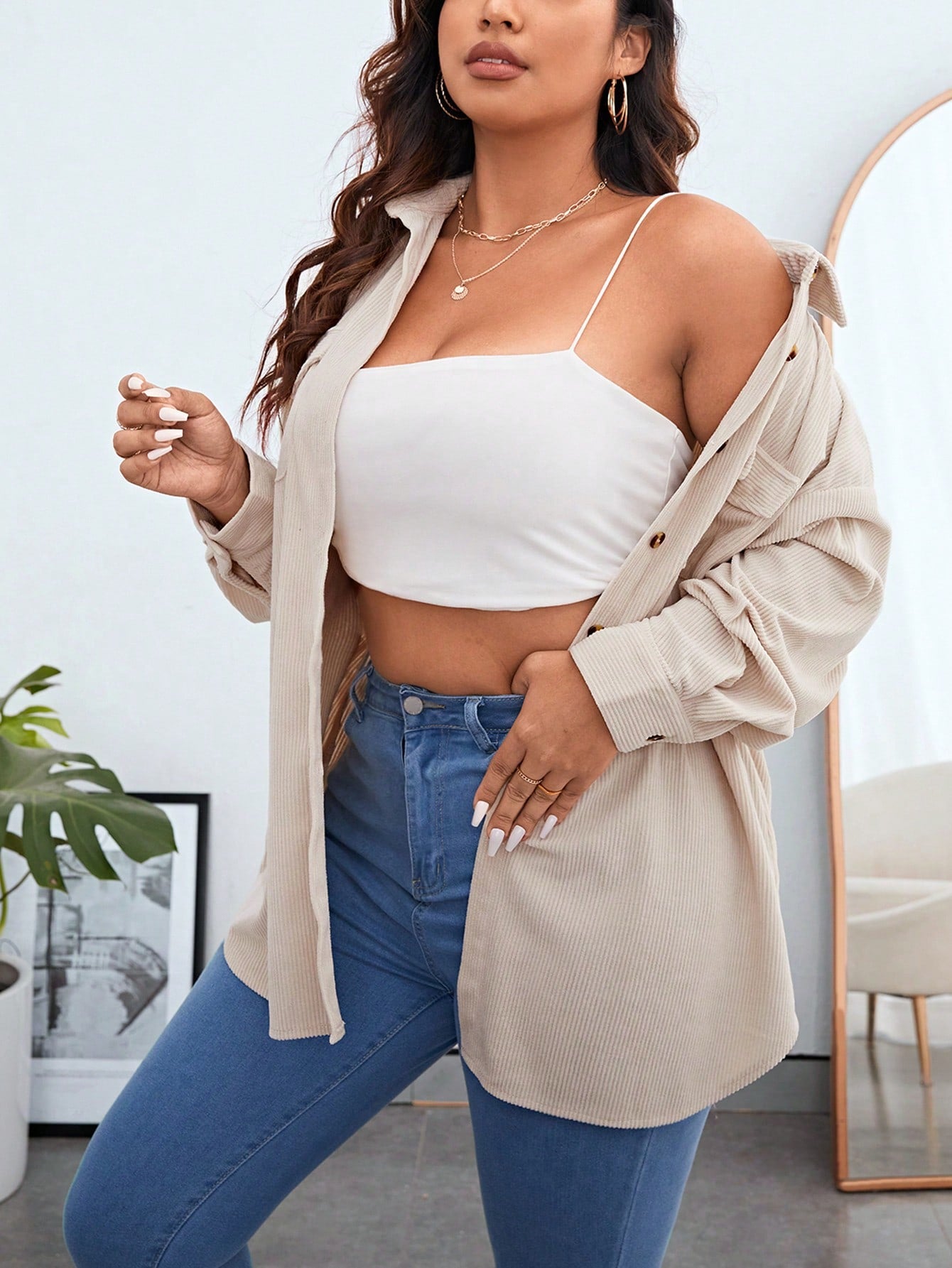 Essnce Plus Flap Pocket Drop Shoulder Corduroy Coat