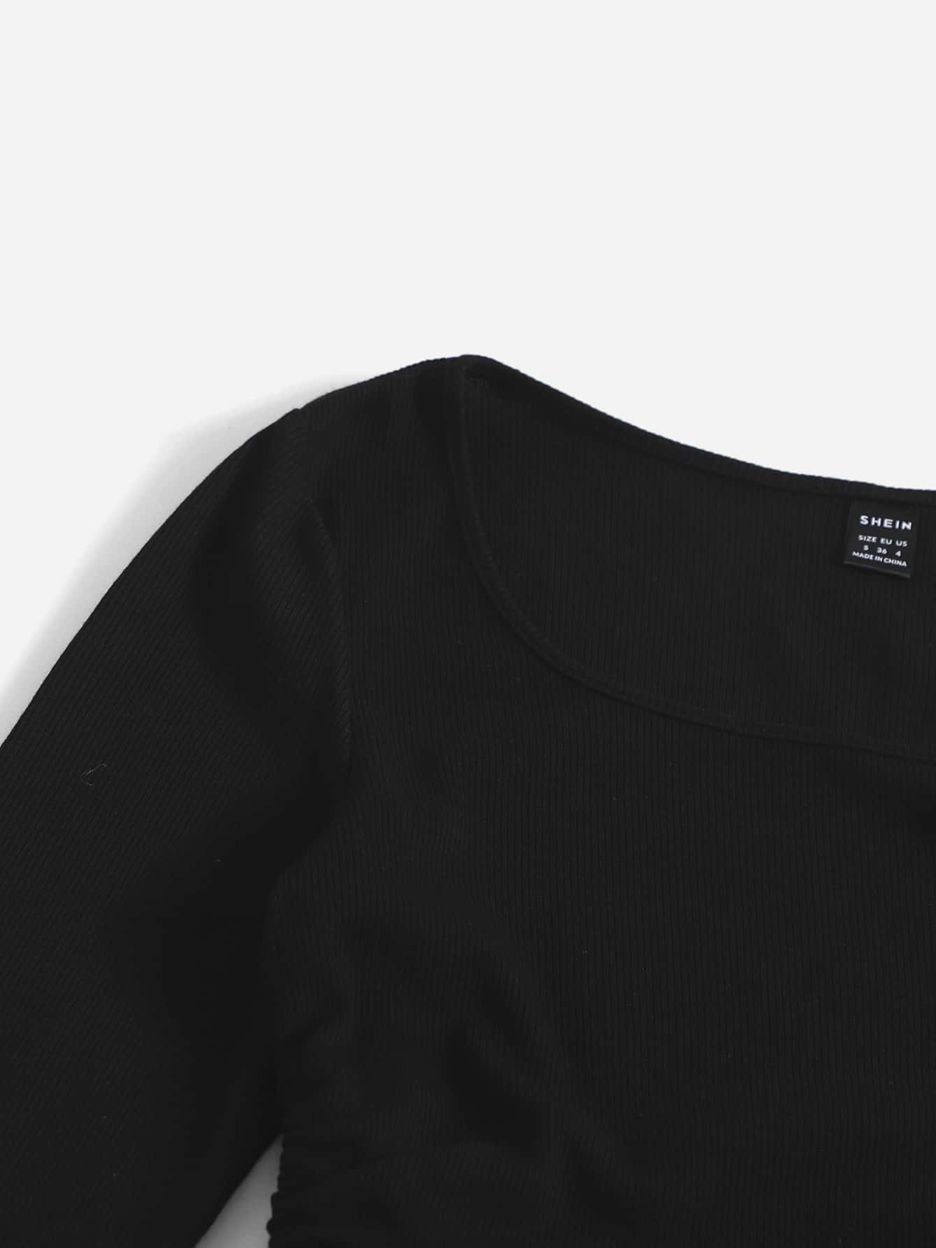 EZwear Scoop Neck Drawstring Side Bodycon Dress