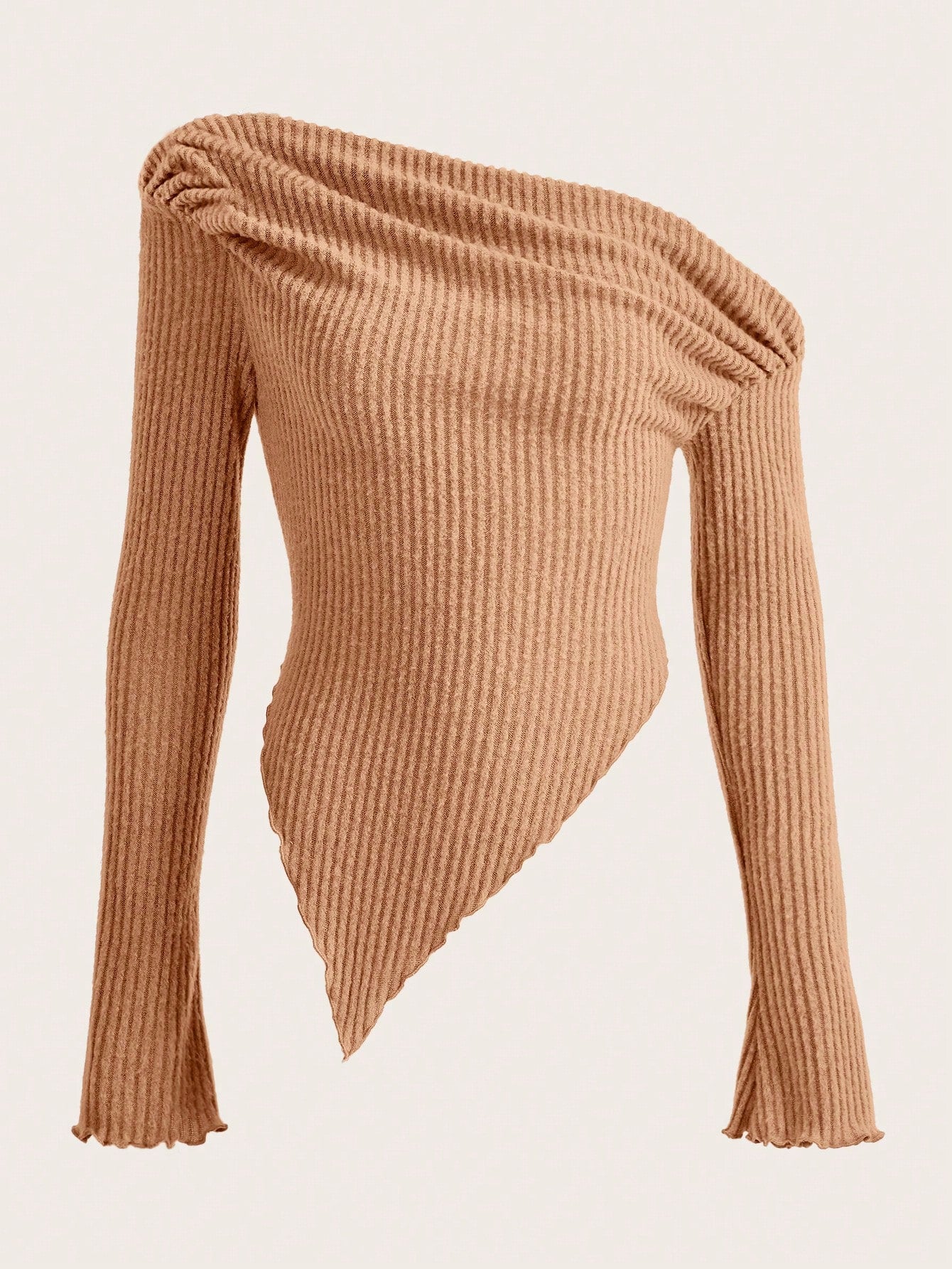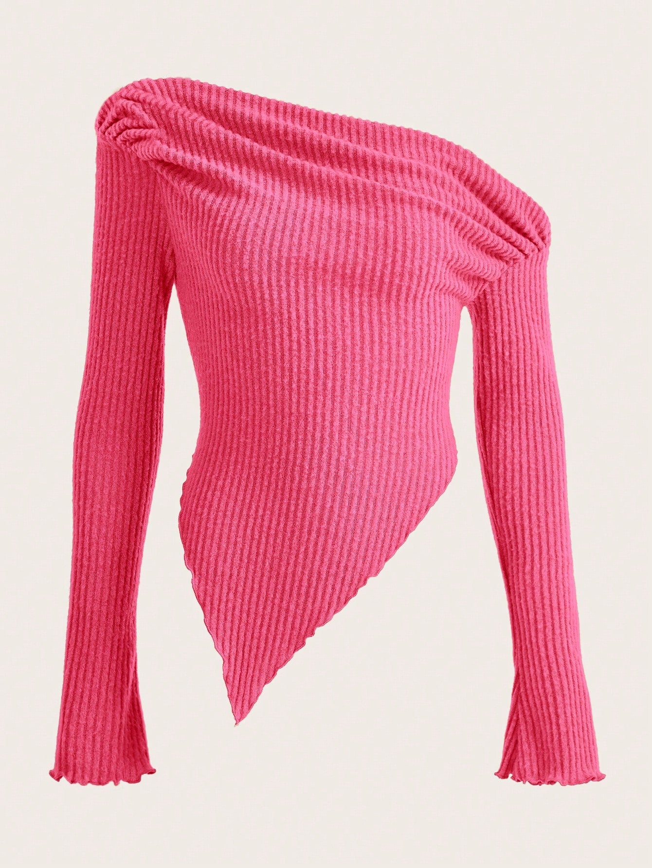 ICON Asymmetrical Neck Lettuce Trim Tee