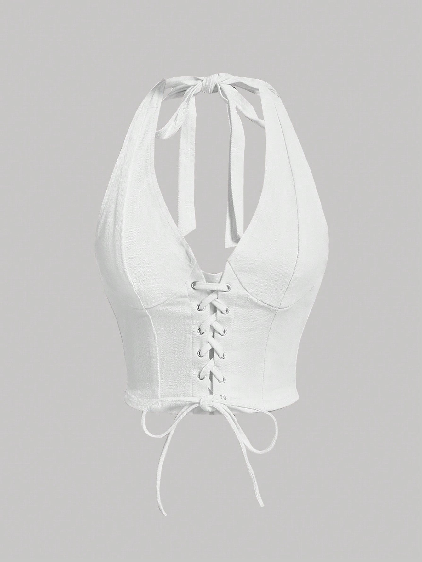 MOD Lace Up Front Halter Neck Denim Top
