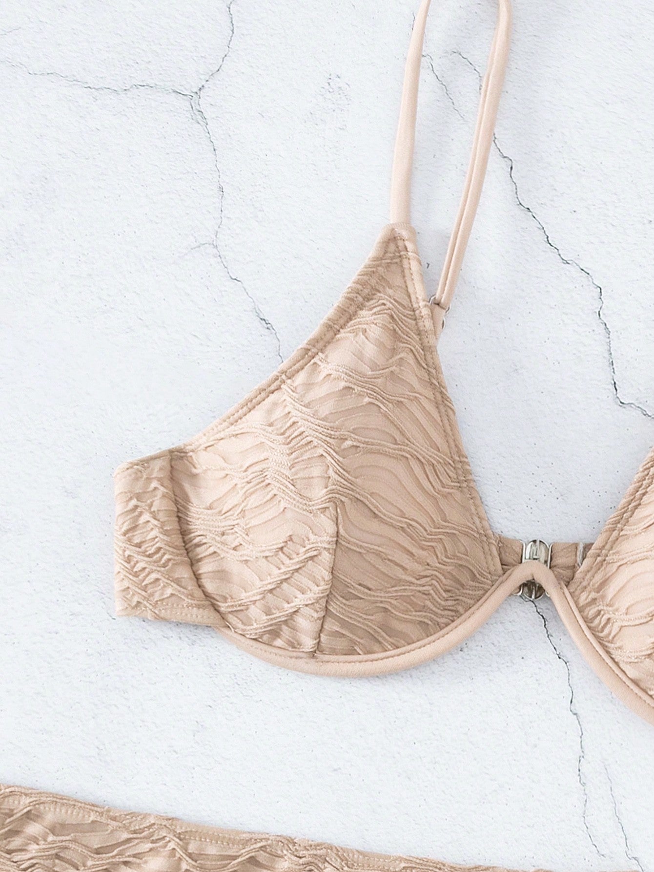 Plain Underwire Bikini Swimsuit With Beach Skirt