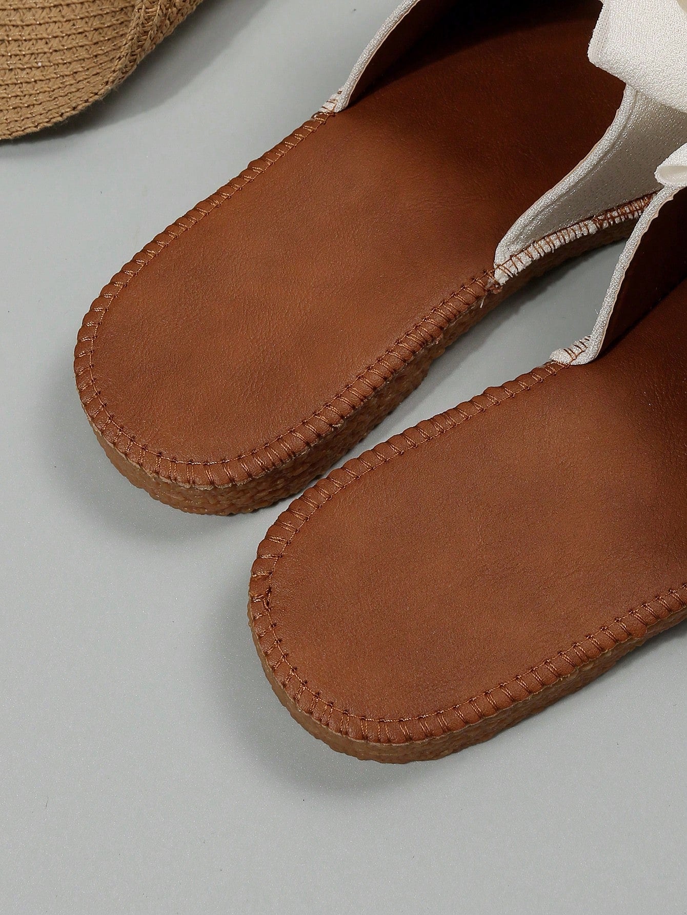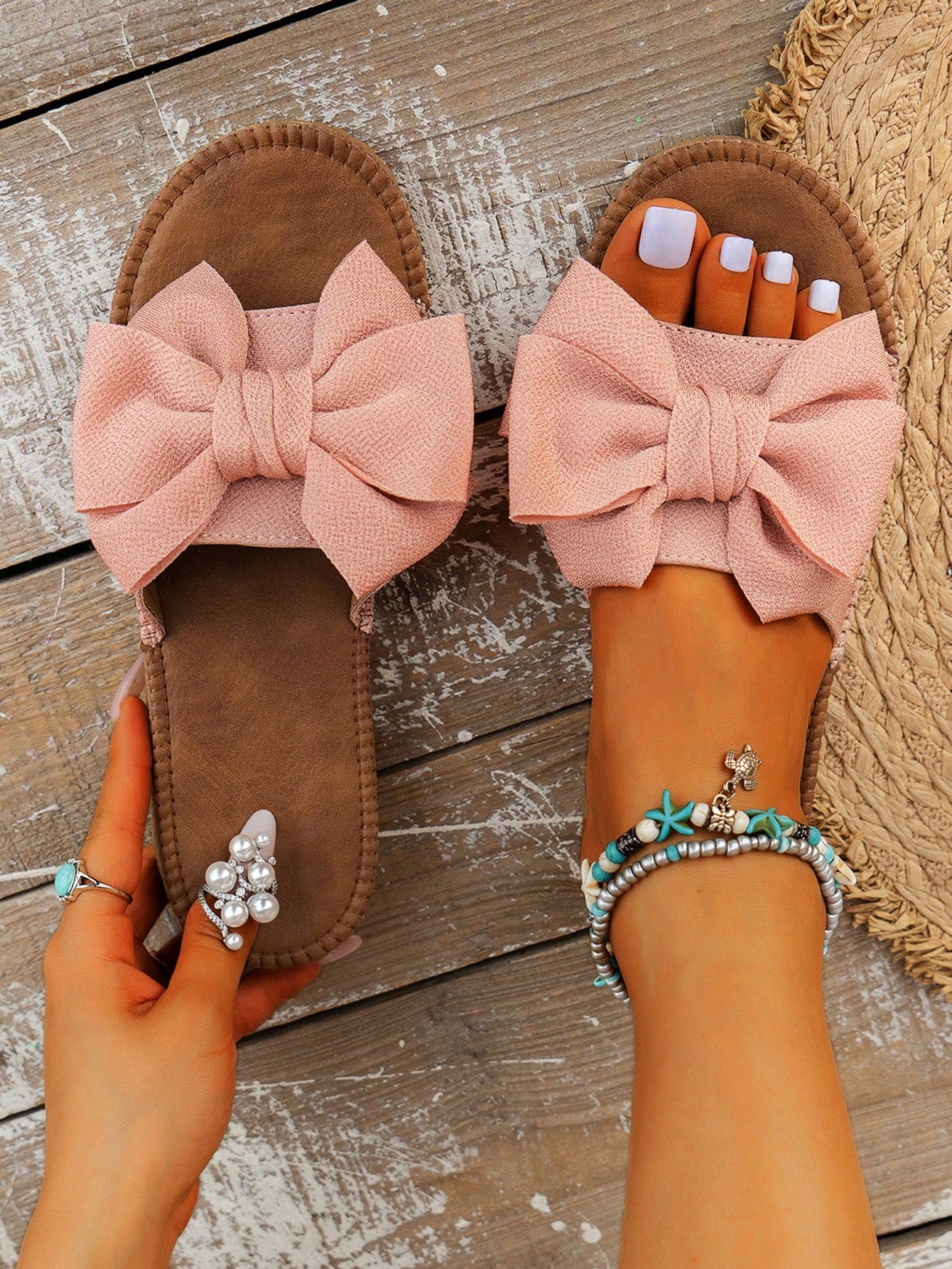 Preppy Slide Sandals For Women, Bow Decor Single Band Flat Sandals