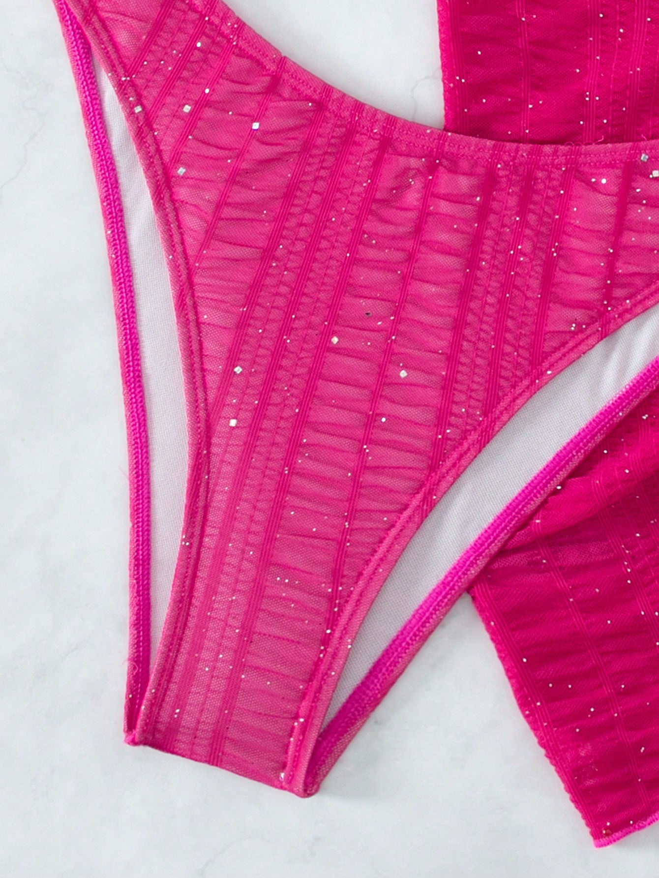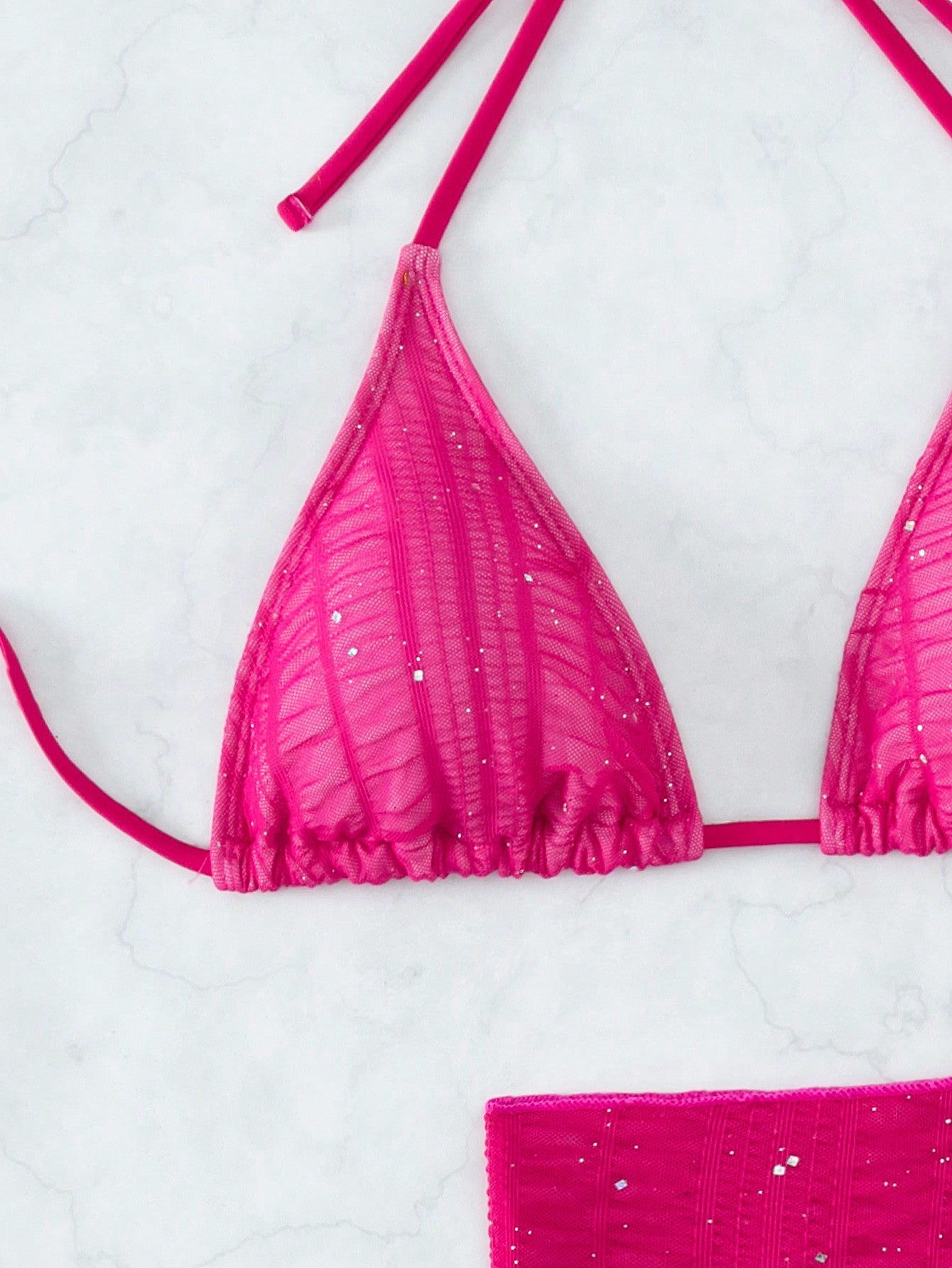 SHEIN Swim BAE Plain Halter Triangle Bikini Swimsuit With Beach Skirt