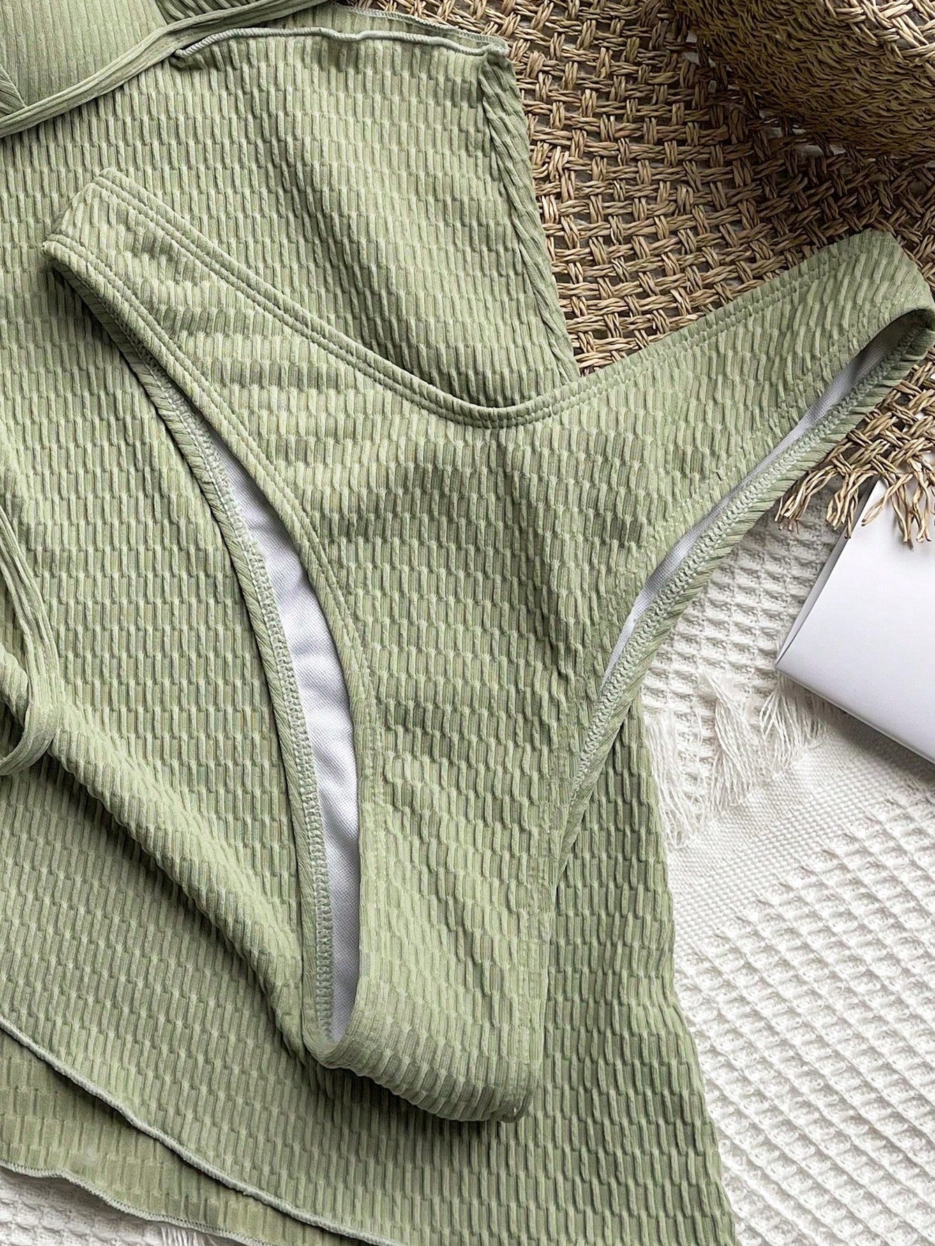 Swim Basics Textured Bikini Set Push Up Bra & Bikini Bottom & Cover Up 3 Piece Swimsuit