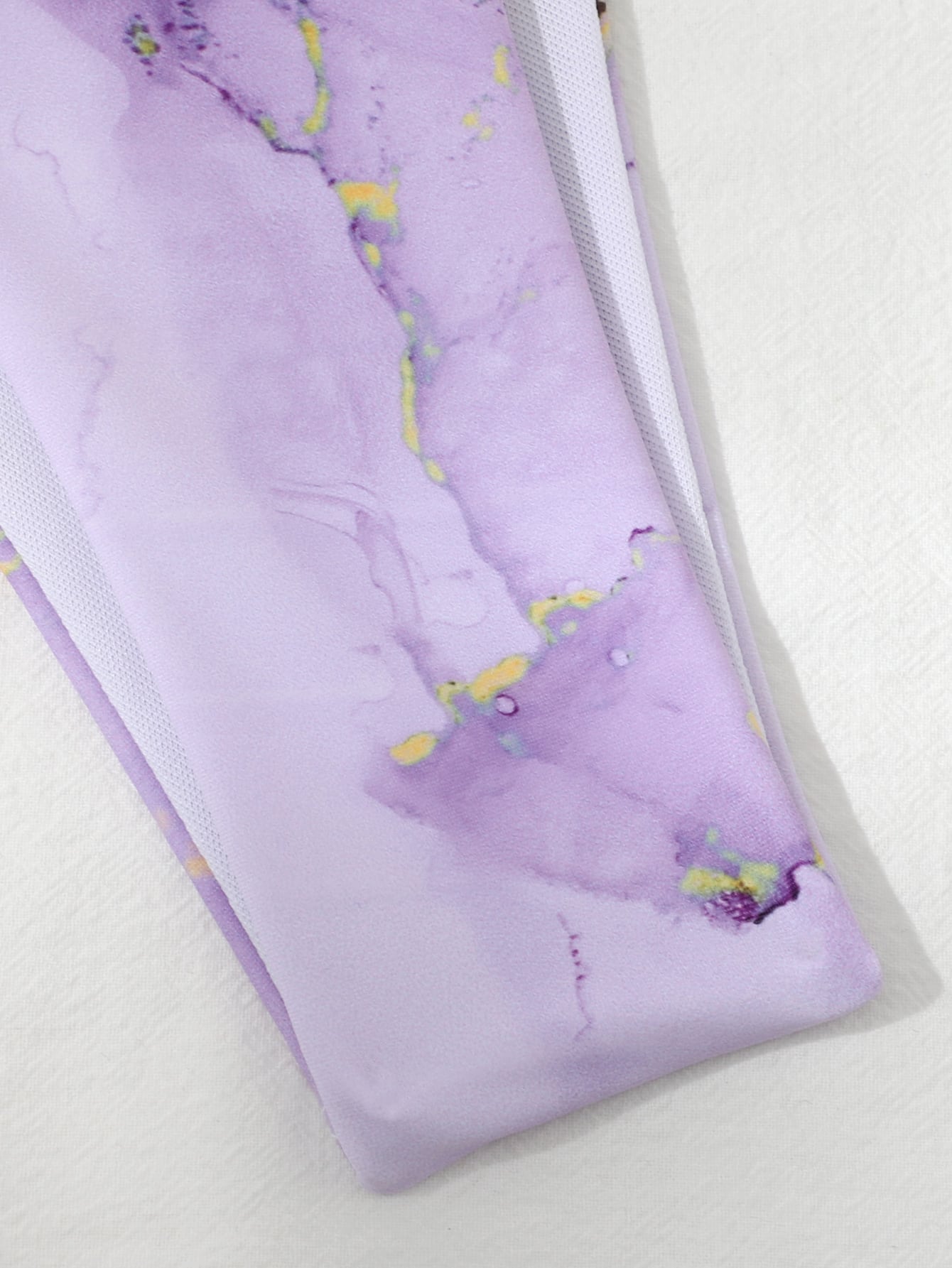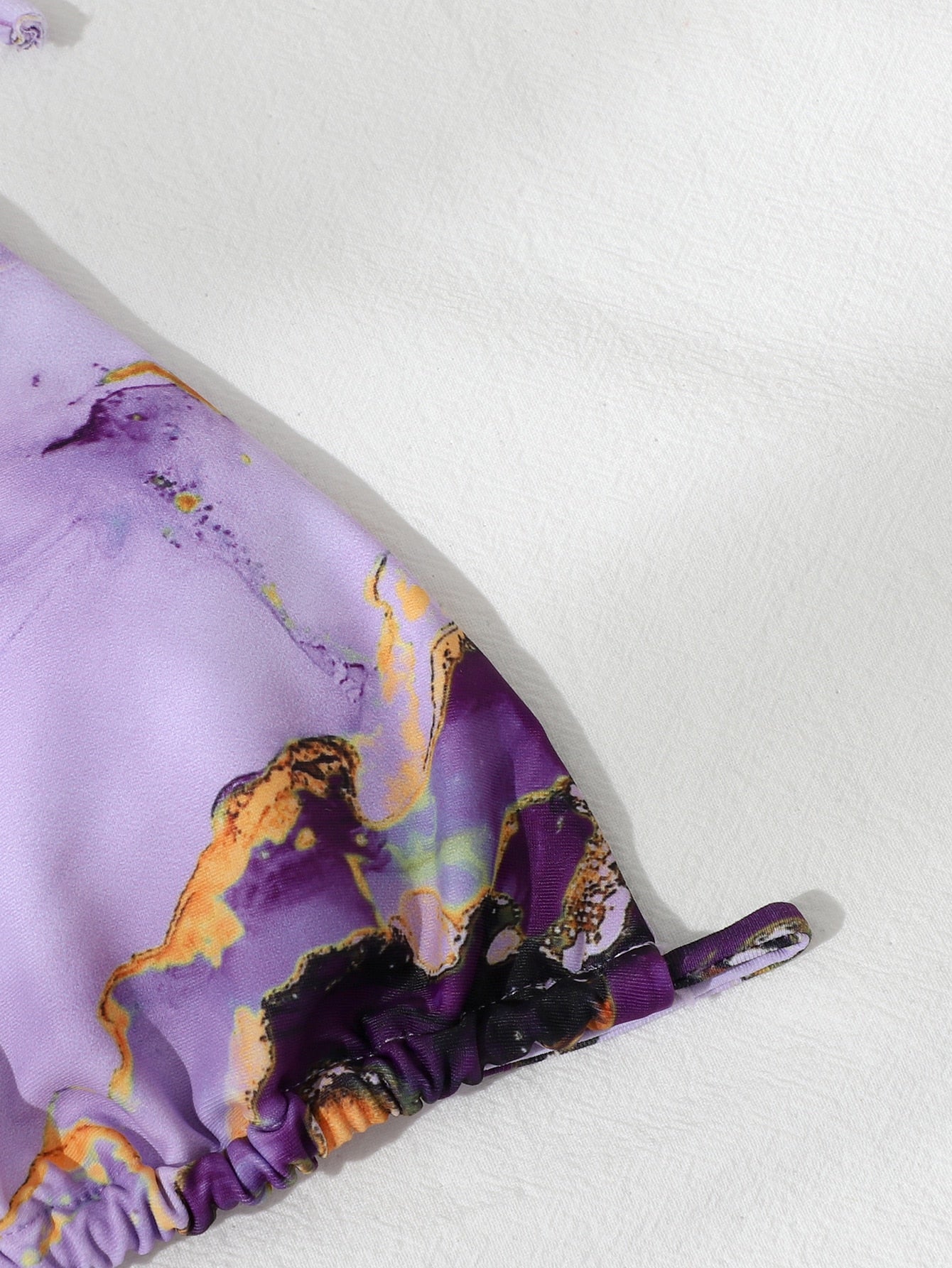 Swim Vcay Marble Print Bikini Set Halter Micro Triangle Bra Top & Thong & Cover Up Skirt 3 Piece Bathing Suit