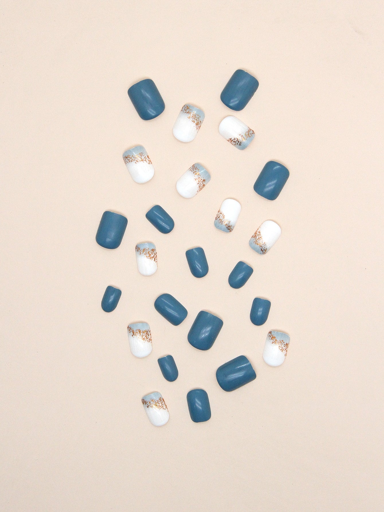 Transform Your Nails with 24pcs Short Square Turquoise Ombre Glitter Marble Print Fake Nail & 1sheet Tape & 1pc Nail File