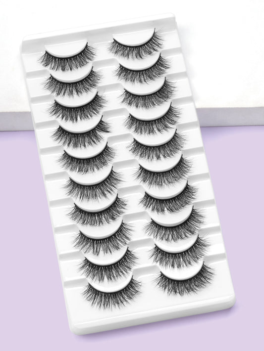 10pairs Natural False Eyelashes & 4pcs Tool Set